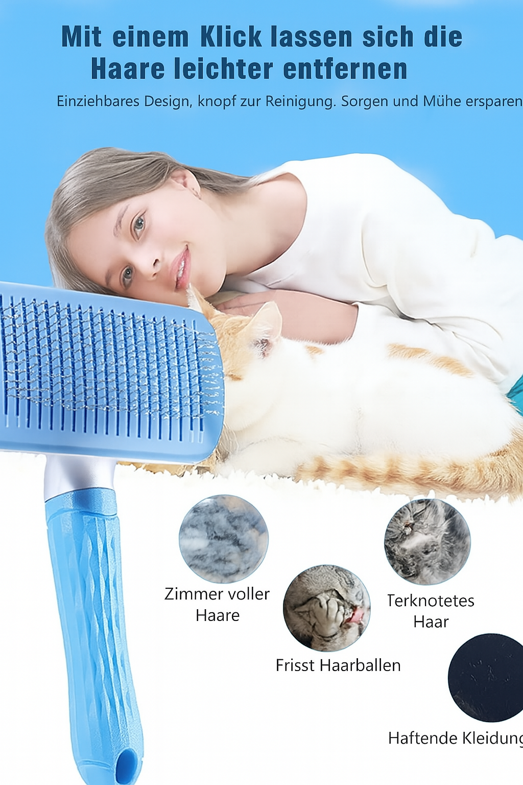 Diese innovative Tierhaarbürste macht Fellpflege kinderleicht: Mit nur einem Klick lassen sich Haare mühelos entfernen, während dein Liebling sanft gebürstet wird – ohne Ziepen, ohne Stress.