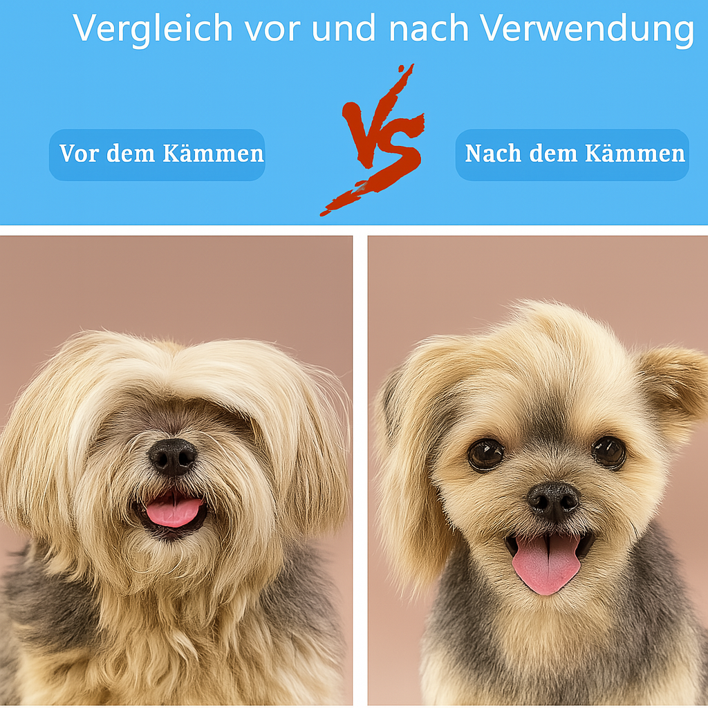 Unsere sanfte Bürste verwandelt Stress in Nähe, das Bürsten in eine Zeit voller Vertrauen und Liebe. Dein Hund fühlt sich nicht nur leichter, sondern auch geliebt – und du siehst sein glückliches Gesicht wieder jeden Tag.